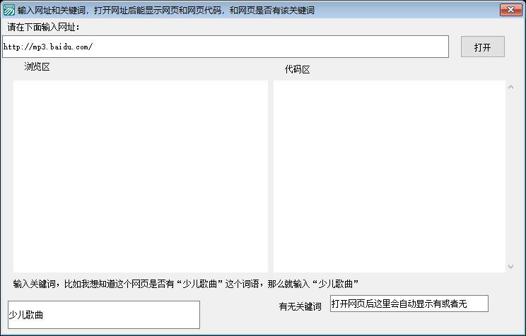 功能说明:该程序是一个用于检测网页内容中是否包含特定关键词的工具。主要功能是通过输入网址,获取网页内容,并检查该内容中是否包含用户指定的关键词,最后在界面上显示“有”或“无”的结果。程序界面包含一个编辑框用于输入网址,一个编辑框用于输入要查找的关键词,一个按钮用于触发检测操作,以及三个编辑框分别用于显示输入内容、检测结果和网页源代码。程序的核心逻辑是通过HTTP读取网页内容,使用寻找文本函数判断关键词是否存在,并根据结果更新结果显示。整体程序结构清晰,功能明确,适用于快速检测网页内容中的关键词存在情况。