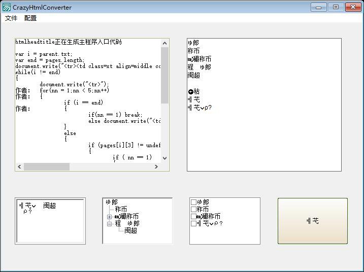 功能说明:该程序是一个用于将GBK编码的文本转换为BIG5编码的工具。程序的核心功能是通过内码转换函数实现字符编码之间的转换,主要操作对象是字符串“狂鷹”,并使用了XP风格的界面设计。程序的主要子程序为“__启动窗口_创建完毕按钮1”,表明其在窗口创建完成后执行相关操作,核心功能围绕编码转换展开,因此可以总结为一个GBK到BIG5编码转换工具。程序结构简洁,主要功能明确,适用于需要处理中文字符编码转换的场景。