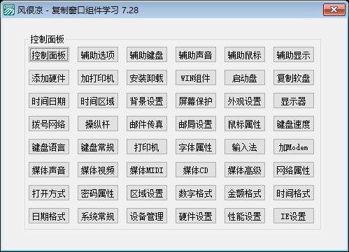 功能说明:该程序是一个用于快速访问系统控制面板和辅助功能的工具。程序界面包含48个按钮,这些按钮被排列成6列8行,每个按钮对应不同的系统功能。通过点击按钮,用户可以快速启动控制面板、辅助选项或辅助键盘等系统设置。此外,程序还包含一个画圆形的功能,可以根据用户输入的半径和数目在画板上绘制圆形并标注数字。整体功能围绕系统控制与图形绘制展开,主要目的是为用户提供便捷的系统操作方式和简单的图形展示功能。