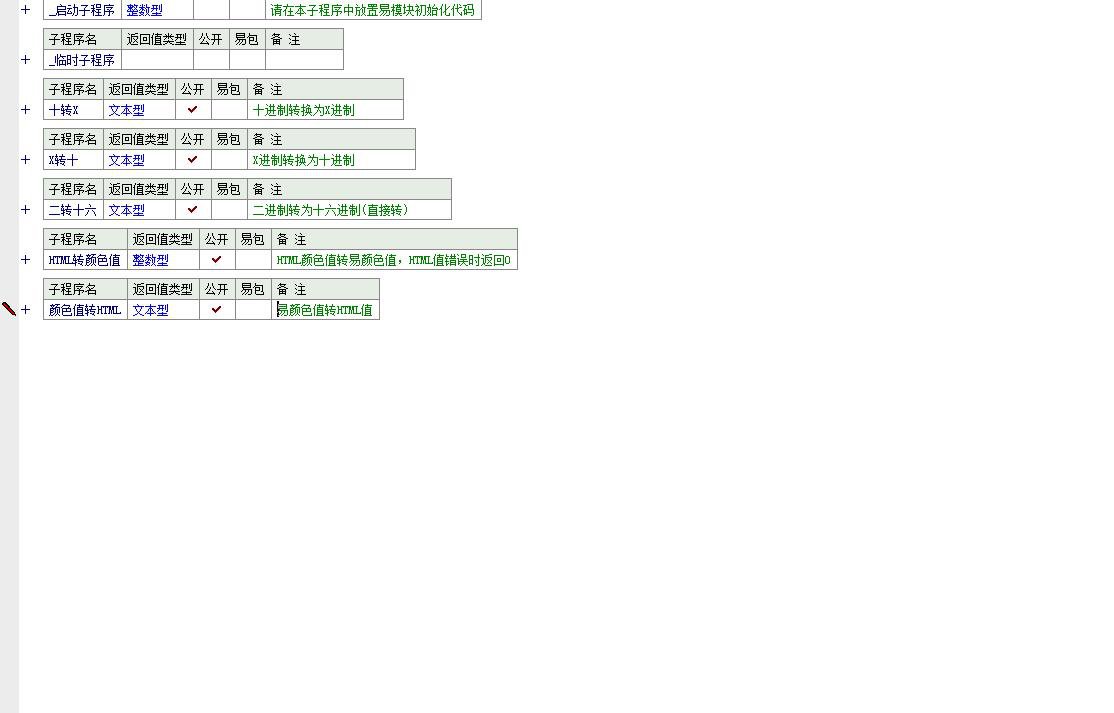 功能说明:该程序是一个用于进行不同进制之间转换的易语言程序。主要功能包括将十进制数转换为其他进制(如二进制、十六进制等),以及将其他进制的数转换为十进制。此外,还包含将二进制直接转换为十六进制的功能,以及将HTML颜色值转换为易语言可识别的颜色值。程序通过多个子程序实现这些功能,每个子程序对应一种特定的转换操作。整体上,这是一个实用的进制转换工具,适用于需要处理多种进制数据的场景。