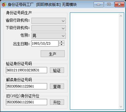 界面上的“按钮 2"集成了升位与查询功能,用户输入号码后,程序先确保其为 18 位(若是 15 位则先升位),然后输出包含位置、出生日期和性别的详细信息。