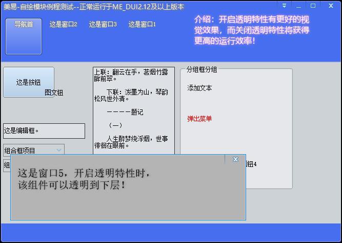 本程序是基于易语言(E-Language)编写的一段核心界面初始化代码,其主要功能是演示和实现一套高度定制化、具美观皮肤效果的用户界面(UI)系统。程序并未包含复杂的业务逻辑数据处理,而是专注于图形用户界面的架构搭建、控件生成、样式美化以及事件系统的绑定。通过阅读代码,可以看出这是一个典型的 UI 框架集成示例或界面模板工程。
