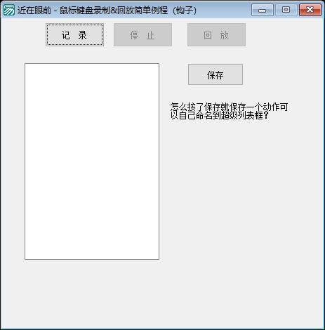 综上所述,这是一个典型的自动化测试辅助工具或简单的宏录制器原型。它能够记录用户在特定时间段内的鼠标和键盘操作轨迹,并在之后精确地重演这些操作。