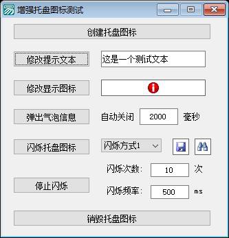 功能说明:该程序是一个基于易语言开发的Windows系统托盘图标(通知区域图标)增强管理工具。其核心功能围绕“托盘图标”的全生命周期控制与交互增强展开,主要提供以下能力:1)创建和销毁托盘图标(通过按钮7创建、按钮4销毁);2)响应并区分四种鼠标操作事件(左键单击/双击、右键单击/双击),以弹出对应提示信息,实现精细化用户交互;3)动态设置托盘图标显示的提示文本(按钮2调用“托盘图标_置提示信息”);4)更换托盘图标外观(按钮3将图片框1中的图像设为当前托盘图标);5)显示自定义气泡提示(按钮5支持设置标题、内容、图标类型及持续时间);6)实现图标闪烁动画效果(按钮1启动闪烁,支持多图标轮播、闪烁次数、间隔时间及闪烁模式配置;按钮6可随时中止闪烁)。整个程序以“托盘图标_”系列封装函数为操作主体,所有功能均服务于提升传统Windows托盘图标的可用性、可视化反馈与用户交互体验,适用于需要后台常驻、轻量级交互提示的工具类软件(如系统监控、快捷启动器、消息提醒器等)。程序界面简洁,通过按钮与编辑框/图片框等控件实现参数配置,无复杂业务逻辑,专注托盘图标本身的功能扩展,属于典型的系统级UI增强辅助工具。