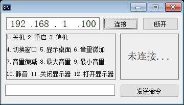 功能说明:该程序是一个典型的远程控制木马(RAT),主要功能是通过TCP服务端监听7774端口,接收外部指令并执行高危系统操作,同时具备持久化驻留与隐蔽运行能力。程序启动时自动将自身复制为“cccmd.exe”至Windows系统目录,创建开机启动快捷方式(cccmd.lnk)并写入系统启动项,实现开机自启;随后隐藏自身进程、保存当前进程ID至临时文件,并初始化音频控制模块和服务器监听。核心控制逻辑由“_服务器1_数据到达”子程序触发,解析接收到的整数型命令(1–12),分别对应关机、重启、休眠、Alt+Tab切换窗口、Win+M最小化所有窗口、音量调节(增大/减小/最大/最小/静音切换)、关闭/开启显示器等操作,并向连接的客户端(即“老板客户”)反馈“执行成功”。界面部分提供简易控制台:支持手动连接/断开指定IP的客户端(按钮1/2)、向已连接客户端发送文本数据(按钮3),以及实时显示接收数据(_客户1_数据到达)。此外,程序内置清除功能(__启动窗口_创建完毕的另一版本),可终止残留进程、删除自身文件及启动项,用于卸载或反侦察。整个程序无合法用户交互意图,行为模式高度符合远控木马特征——隐蔽植入、远程指令驱动、系统级权限滥用,且未包含任何授权验证、用户提示或合规说明,属于恶意软件范畴。