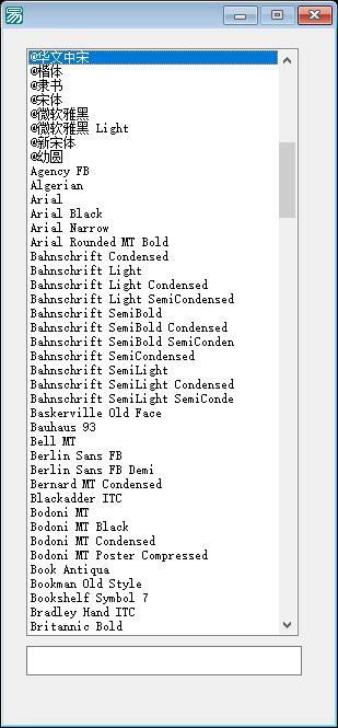 功能说明:该程序是一个用于枚举并显示当前系统中所有可用字体名称的Windows桌面工具。程序启动后自动加载主窗口(窗口1),初始化列表框1为自动排序模式,并立即调用“取字体列表”子程序,通过Windows GDI API(EnumFontFamiliesEx)遍历系统默认设备上下文(由GetDC(0)获取的屏幕DC)所支持的全部字体族。其核心逻辑依赖回调函数EnumFontProc:每当GDI枚举到一种字体时,该回调被触发,程序使用CopyMemory将传入的LOGFONT结构体数据复制到本地变量LF中,从中提取字体名称(lfFaceName字段),并检查该字体名是否已在列表框1中存在;若不存在(返回-1),则将其添加至列表框。整个过程不区分字体类型(如TrueType、Raster等)、不处理字符集(lfCharSet仅设为DEFAULT_CHARSET且未实际解析)、不采集字体家族或样式信息(相关代码被注释),仅专注获取并去重显示可读的字体全名。程序未实现字体预览、筛选、导出或应用功能,亦无界面交互控件(如按钮、搜索框),属于轻量级字体发现与展示工具,典型用途为开发辅助(如UI设计选字参考、易语言字体调试)或系统字体环境快速核查。所有API调用均符合Windows标准,内存操作安全(固定59字节拷贝,匹配LOGFONTA结构大小),且未出现DC泄漏(虽未显式调用ReleaseDC,但GetDC(0)返回的全局DC在进程退出时由系统自动回收,属可接受实践)。综上,这是一个简洁、稳定、功能聚焦的系统字体枚举与列表呈现程序。