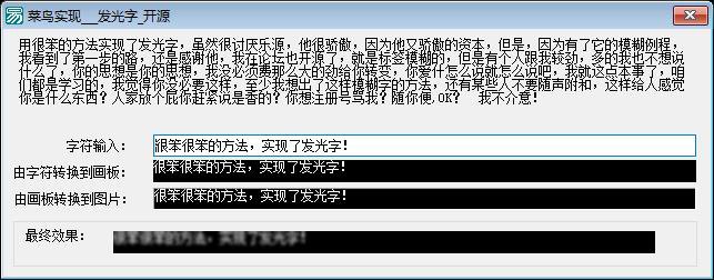 功能说明:该程序是一个基于易语言开发的轻量级图形处理工具,主要功能是将用户输入的文本内容实时渲染为带高斯模糊效果的位图图像。程序启动后自动加载主窗口(窗口1),并在窗口创建完毕时初始化GDI+图形子系统以支持高级图像绘制与特效处理。核心逻辑集中在“_画板2_绘画”子程序中:首先通过“画板1”将编辑框2中的文本内容(如用户输入的标题、标语等)绘制为清晰的位图;随后将该位图加载至GP位图对象,并利用GDI+的模糊特效(GP模糊类)施加半径为3像素的高斯模糊;最后将模糊后的图像绘制到“画板2”(对应界面中的显示区域,由图片框1承载)。整个流程实现了“文本→清晰位图→模糊图像”的一键转换,具备实时预览特性(因绘画触发于重绘事件,且与编辑框内容联动)。程序无复杂交互控件,未涉及文件读写、网络通信或数据库操作,定位为单机本地化的简易图文特效生成工具,适用于制作模糊背景文字图、海报底图、UI占位图等场景。
