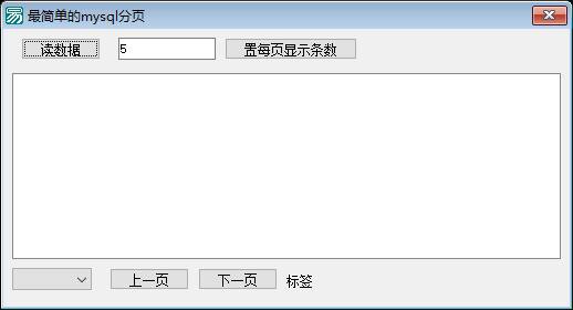 功能说明:该程序的主要功能是从一个名为 "db" 的 MySQL 数据库表中读取数据,并以分页的形式在列表框中展示。用户可以通过界面上的按钮进行翻页操作,也可以设置每页显示的数据条数。具体来说,程序包括以下主要部分: