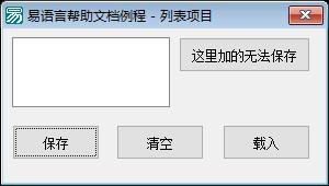 功能说明:这个易语言程序主要用于管理和操作一个列表框中的项目,具体功能包括:保存、清空和载入列表框的项目。程序中包含四个主要子程序(事件处理函数),分别对应界面上不同按钮被点击时触发的操作: