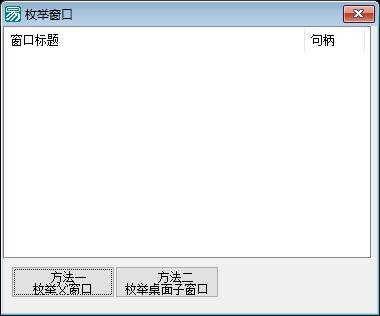 这是一个易语言编写的窗口枚举工具程序,主要功能是枚举系统中所有可见的顶级窗口(父窗口),并显示窗口的标题和对应的窗口句柄。