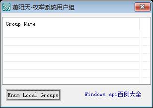功能说明:这是一个易语言编写的Windows系统用户组枚举工具。该程序的主要功能是调用Windows API来枚举系统中的所有本地用户组,并将结果显示在界面的超级列表框中。