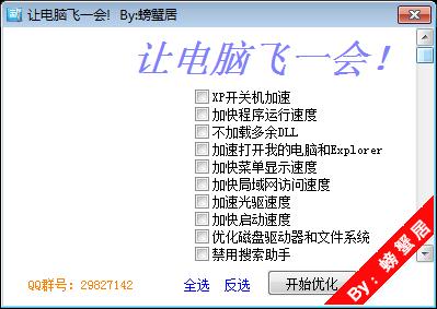 系统结构:XP开关机加速,加快程序运行速度,不加载多余DLL,加速打开我的电脑和Explorer,加快菜单显示速度,加快局域网访问速度,加速光驱速度,加快启动速度,优化磁盘驱动器和文件系统,禁用搜索助手,禁用缩略图,禁用从WINupdata升级驱动,禁用桌面清理向导,禁用office发送错误报告,禁用mediaplayer自动更新,关闭XP文件保护,禁用磁盘默认共享,禁用错误报告,禁用自动播放,禁用启动时弹出错误信息,