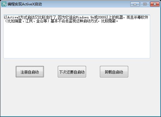 系统结构:注册ActiveX启动方式,卸载ActiveX启动方式,恢复ActiveX启动方式,