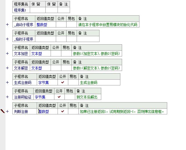 系统结构:生成普通代码,生成黑月代码,高级表格消息处理,屏幕到客户_矩形,右键,置表格数据,控件消息,聚集焦点,修改大小,结束编辑,刷新,消息,ContrlCallBackHoverDemo,imagecall,初始化窗口程序,销毁,整数转换逻辑,逻辑转换整数,文本转换逻辑,编辑框类型转整数,编辑框整数转文本,链接条文本转整数,链接条整数转文本,调用窗口回调_,置窗口信息_,屏幕到客户区_,置父窗口_,客户区到屏幕_,取窗口矩形_,屏幕到客户区_矩形_,关闭隐藏托盘图标,打开托盘图标,取托盘区句柄,GetButtonInfo,隐藏托盘图标,SendMessage,FindWindow,FindWindowEx,GetWindowThreadProcessId,OpenProcess,DuplicateHandle,GetCurrentProcess,CloseHandle,VirtualAllocEx,WriteProcessMemory,ReadProcessMemory,VirtualFreeEx2,文本加密,文本解密,刷新数据库,启动程序,文本加密,文本解密,生成注册码,注册码验证,判断注册,