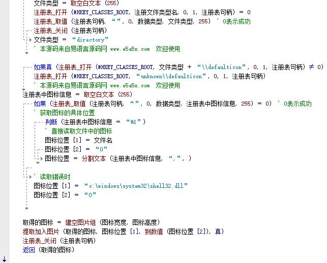 系统结构:子程序_读取注册表关联图标,注册表_打开,注册表_取值,注册表_关闭,