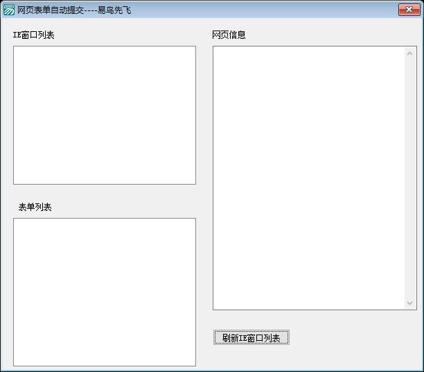 系统结构:获取网页对象,获取表单列表,取网页信息,取表单信息,刷新IE列表,枚举IE窗口,取句柄,取标题,取窗口数量,参数列表,提交,ObjectFromLresult,RegisterWindowMessage,SendMessageTimeOut,GetWindowText,FindWindowEx,前台窗口,