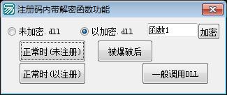 系统结构:函数1,函数2,加密函数,执行函数,根据注册码生成执行机器码,一般的检查注册码,临时调用_带两参数,临时调用_不带参数,临时调用_带一参数,