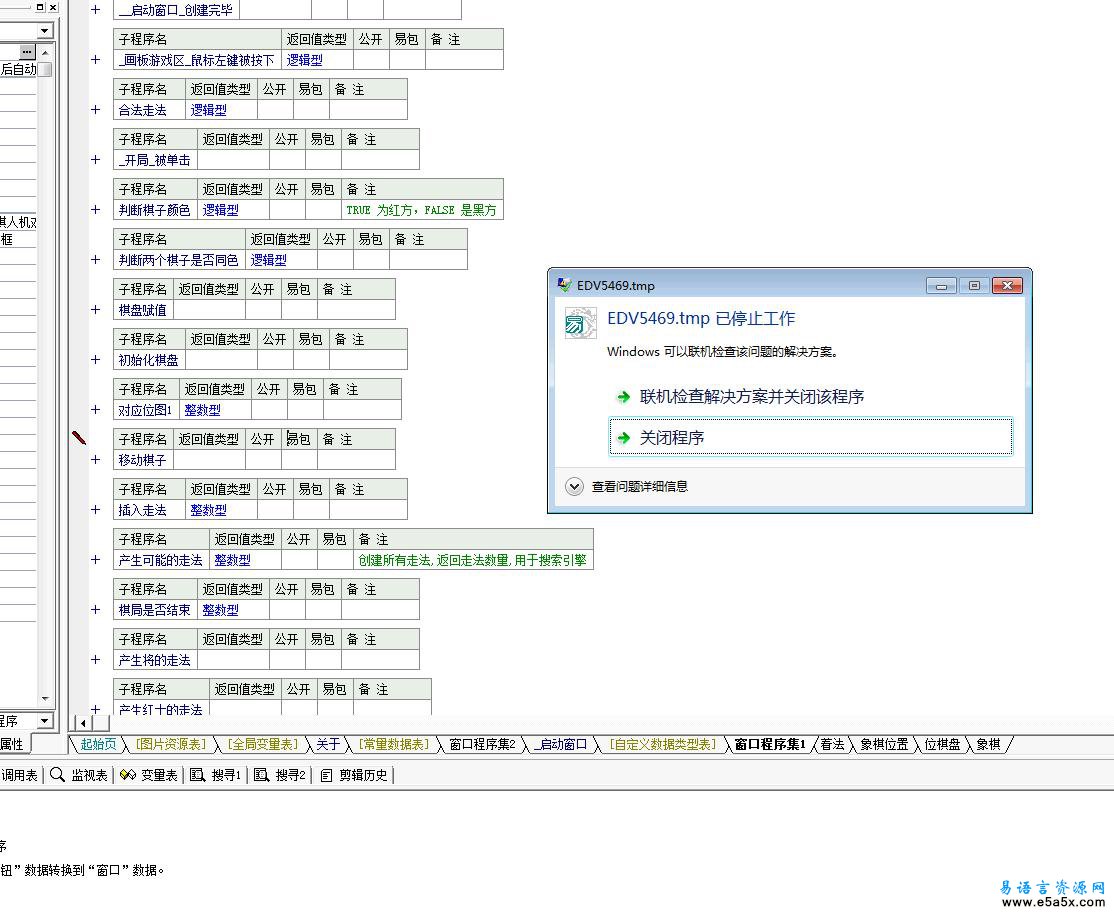 易语言象棋人机对弈(2005年大赛二等奖)源码,象棋人机对弈(2005年大赛二等奖),合法走法,判断棋子颜色,判断两个棋子是否同色,棋盘赋值,初始化棋盘,对应位图1,移动棋子,插入走法,产生可能的走法,棋局是否结束,产生将的走法,产生红士的走法,产生黑士的走...