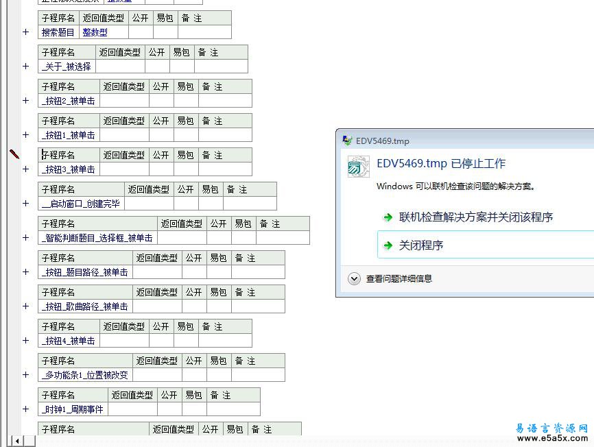 系统结构:搜索题目,智能随机时间播放,判断时间,猜歌名_开始游戏,猜歌名初始化倒计时,猜歌名时间限制,显示猜歌名题目和选项,猜歌名处理,选项插入答案,猜歌名统计结果,猜歌名答题判断,添加,取文本,取长度,清除文本,添加,取数值,取文本,取长度,清除,目录是否为空,取文本内容长度,查找文件,取Find文件名,取目录下所有文件个数,查找下一个文件,关闭搜索文件,取目录下所有文件,浏览文件夹,去重复名,识别路径有效,读取题目文档,气泡提示,对歌曲信息进行处理,取当前播放位置,防重复加入,写存档数据,播放,取歌名,创建托盘图标,NewProc,过滤出最大值,打开媒体,播放媒体,关闭媒体,取媒体状态,停止媒体,系统静音,继续媒体,暂停媒体,置视频区域,置视频窗口,取视频窗口句柄,取媒体长度,取媒体帧数,跳到指定帧,置媒体位置,置播放速度,取播放速度,取媒体位置,取视频区域,取媒体音量,置媒体音量,置声道音量大小,取声道音量大小,取媒体声道,置媒体声道,是否已就绪,取视频字节流速率,全屏模式,是否为视频,取视频源,猜歌手_开始游戏,猜歌手初始化倒计时,猜歌手时间限制,显示猜歌手题目和选项,猜歌手处理,选项插入答案,猜歌手答题判断,猜歌手统计结果,浏览文件夹信息_,从列表id取路径_,目录是否为空_,查找文件_,查找下一个文件_,FindFirstFileA,FindNextFileA,FindClose,关闭搜索句柄_,lstrlenA,API_执行MCI命令,API_获取MCI错误信息,API_发送MCI文本,API_取短文件名,API_取客户区矩形,API_取父窗口,CreateCompatibleDC,SetWindowLongA,RegisterWindowMessageA,CallWindowProcA,lstrcpyn,Shell_NotifyIconA,